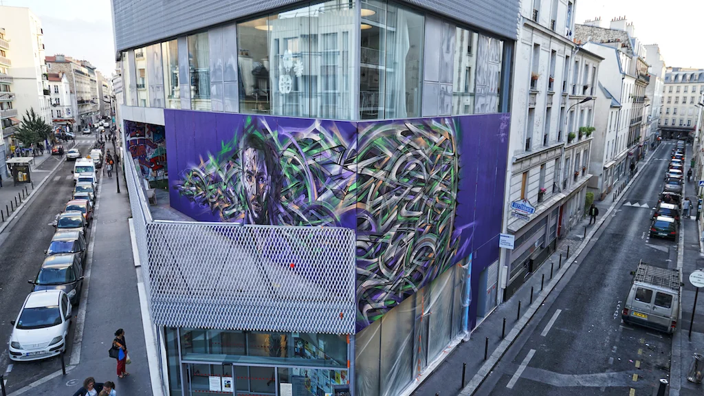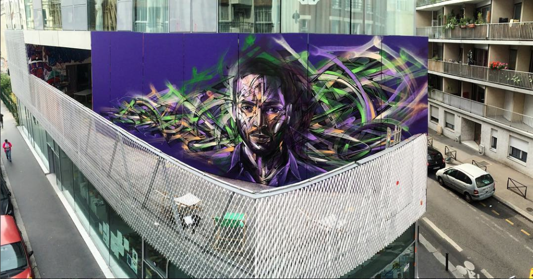 A couple of days ago, Paris based street artist, Hopare, was asked by the association Art Azoï to paint a mural on the terrace of the entertainment center Ken Saro-Wiwa, in Paris.