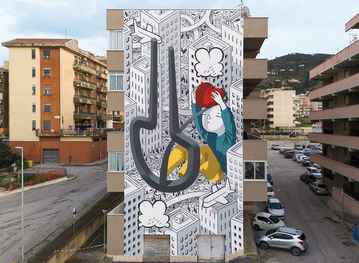 Millo latest mural created in Sicily, in the city of Alcamo for Urban Sunrise Alcamo, a project born with the aim to spark a change that goes beyond aesthetics, focusing primarily on the social fabric of the neighborhood.