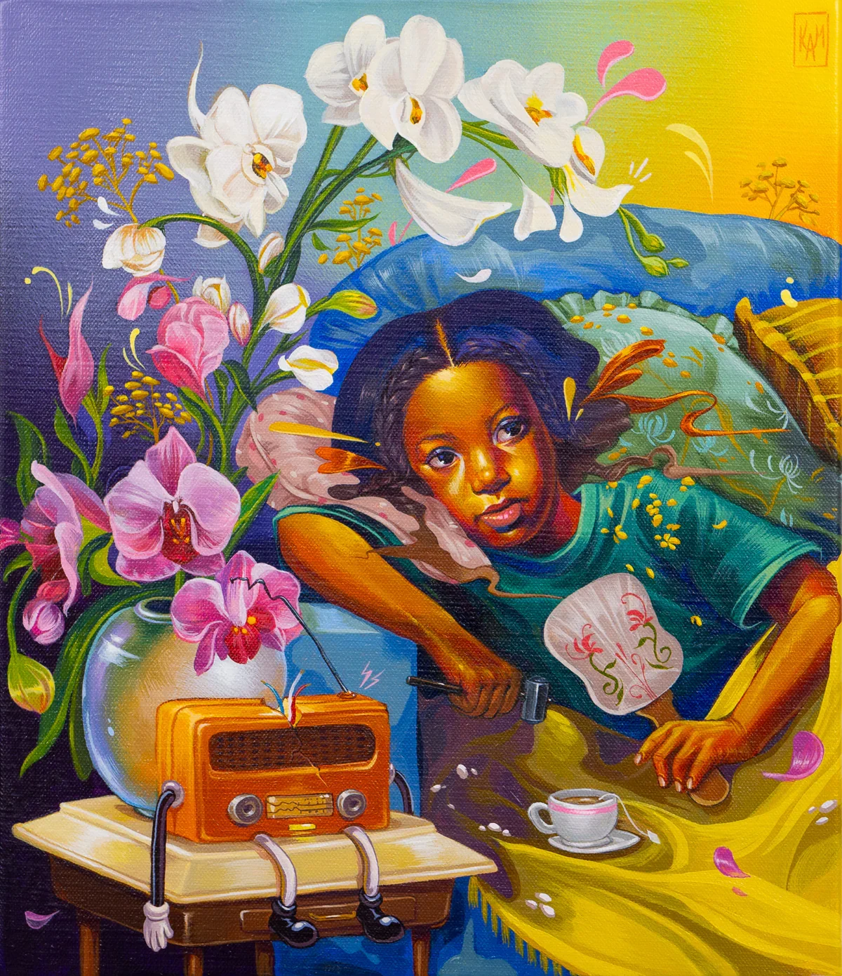World in My Eyes is, first and foremost, rooted in the lives of everyday people. Both Sentrock and Mahaffey have long depicted friends and neighbors in their own Chicago neighborhoods, exploring how our city shapes its youngest residents. How are children cared for? How are their imaginations and dreams nurtured? These questions recur throughout both artists’ practices and always hinge on another: how do children thrive amid turmoil, whether political, cultural, or personal?